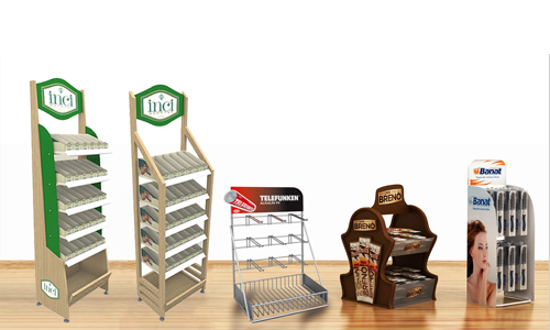 Satış Destekleyici ürün olan ile birlikte firmaların ürünlerini teşhir edebileceği Akralik, Karton, Ahşap, Metal türü materyallerden üretilmektedir.